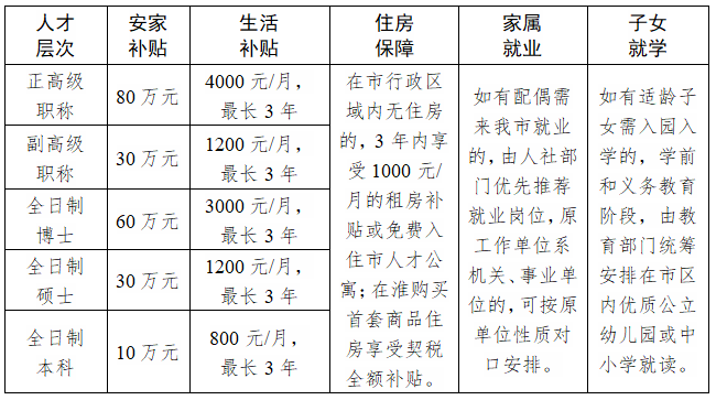 根據(jù)《中共淮北市委辦公室 淮北市人民政府辦公室關于印發(fā)〈淮北市事業(yè)單位引進急需緊缺人才暫行辦法〉的通知》(辦〔2021〕27號)等文件規(guī)定,對新引進與用人單位簽訂5年以上合同全職在淮工作的急需緊缺人才,除正常享受所在事業(yè)單位工作人員工資和各項福利外,還享受安家補貼、生活補貼、住房保障、家屬就業(yè)、子女就學等方面的優(yōu)惠待遇。