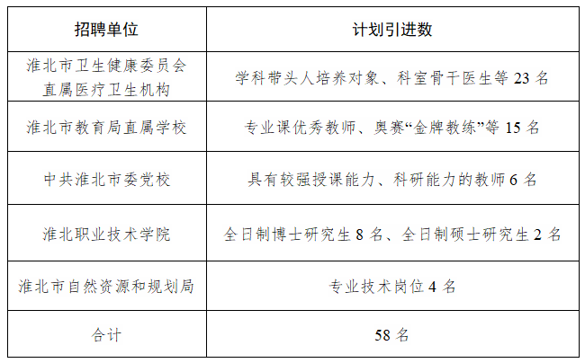 計劃引進急需緊缺人才58名(具體崗位及資格條件見附件)。