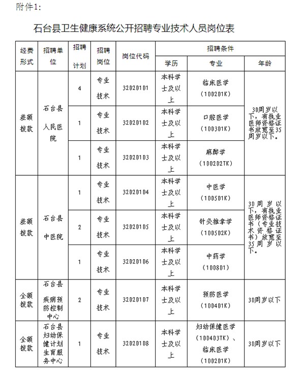 1、石臺(tái)縣衛(wèi)生健康系統(tǒng)公開招聘專業(yè)技術(shù)人員崗位表