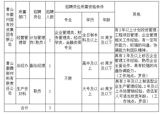 2021-09-14 20:46:58閱讀()黃山市徽州國有投資集團(tuán)有限公司徽州國投集團(tuán)及下屬子公司因工作需要,面向社會公開招聘3名工作人員,其中集團(tuán)本部工作人員1名、徽騰新材料公司2名。現(xiàn)將有關(guān)招聘事宜公告如下: