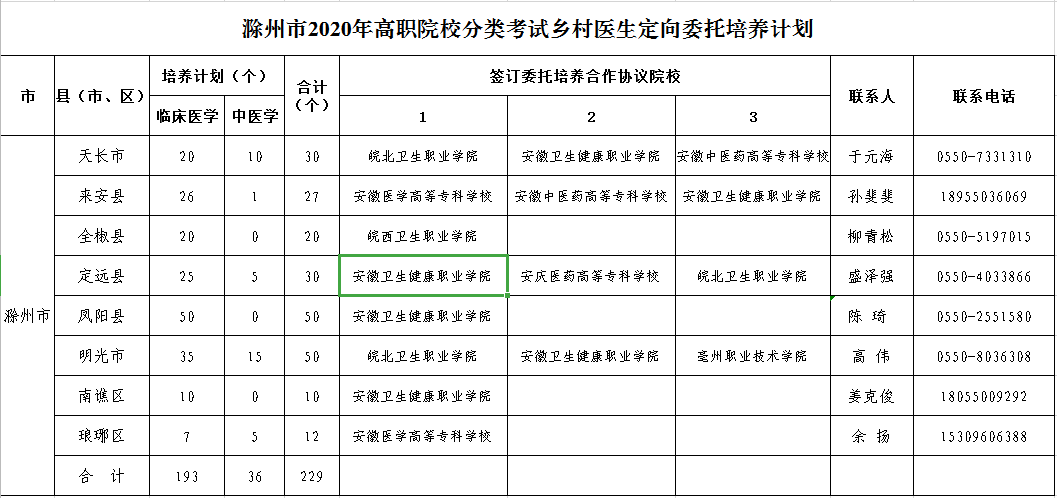2020年滁州市鄉(xiāng)村醫(yī)生定向委托培養(yǎng)計劃通知