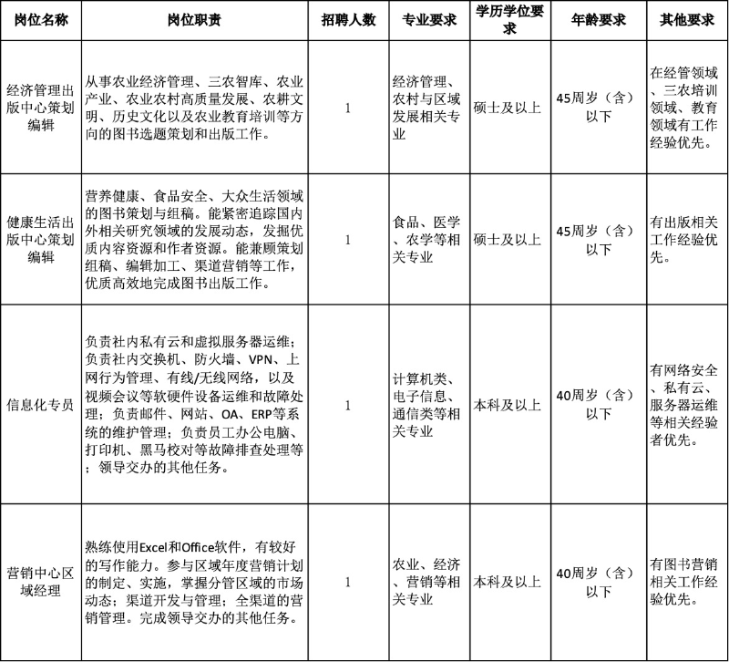 2021年中國農(nóng)業(yè)科學(xué)技術(shù)出版社有限公司編輯及營銷人員招聘公告