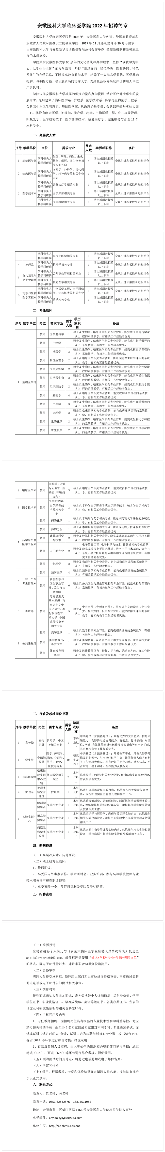 2022年安徽醫(yī)科大學(xué)臨床醫(yī)學(xué)院招聘簡(jiǎn)章
