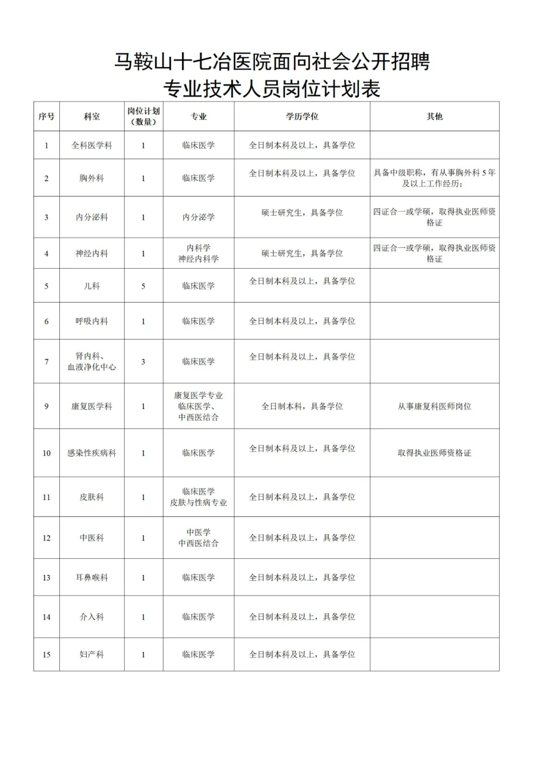 個(gè)人應(yīng)聘材料發(fā)送至馬鞍山十七冶醫(yī)院人力資源部郵箱,并備注:姓名+應(yīng)聘崗位+手機(jī)號(hào)。