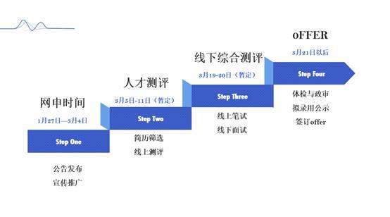 報名時間截止后,投遞集團總部崗位的通過簡歷篩選的候選人將參加線上測評,線上測評時間為2022年3月5日-3月11日(暫定),測評通知和測評鏈接將通過短信及郵件方式發(fā)送。