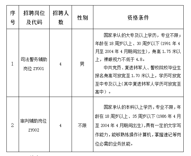 1.基本條件:具有中華人民共和國(guó)國(guó)籍,擁護(hù)中華人民共和國(guó)憲法,擁護(hù)中國(guó)共產(chǎn)黨領(lǐng)導(dǎo)和社會(huì)主義制度;具有良好的政治素養(yǎng)、專業(yè)能力和職業(yè)操守;熱愛法院工作,服從單位分配,品行端正,心理健康,愛崗敬業(yè),吃苦耐勞,有較好的群眾溝通能力;熟悉法律基礎(chǔ)知識(shí);身體健康,五官、體型端正;無口吃、無重聽、無生理缺陷、紋身等特征。