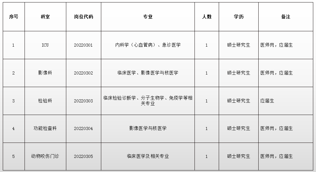 (五)專業(yè):專業(yè)對(duì)口,醫(yī)學(xué)類崗位要求本科專業(yè)為5年制/4年制臨床醫(yī)學(xué)或與碩士研究生專業(yè)一致,非醫(yī)學(xué)類崗位要求本科專業(yè)與碩士研究生專業(yè)或崗位相關(guān)。