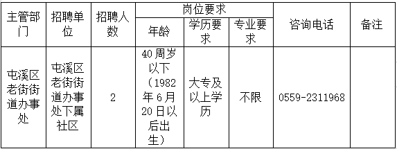 為切實(shí)加強(qiáng)街道工作人員的隊(duì)伍管理和建設(shè),解決工作人員不足問題,根據(jù)《屯溪區(qū)機(jī)關(guān)事業(yè)單位編外人員管理辦法》規(guī)定和要求,結(jié)合屯溪區(qū)老街街道辦事處工作實(shí)際所需,經(jīng)核準(zhǔn),屯溪區(qū)老街街道辦事處委托黃山市仁和人力資源服務(wù)有限公司面向社會(huì)公開招聘2名社區(qū)專職工作者。現(xiàn)將有關(guān)事項(xiàng)公告如下: