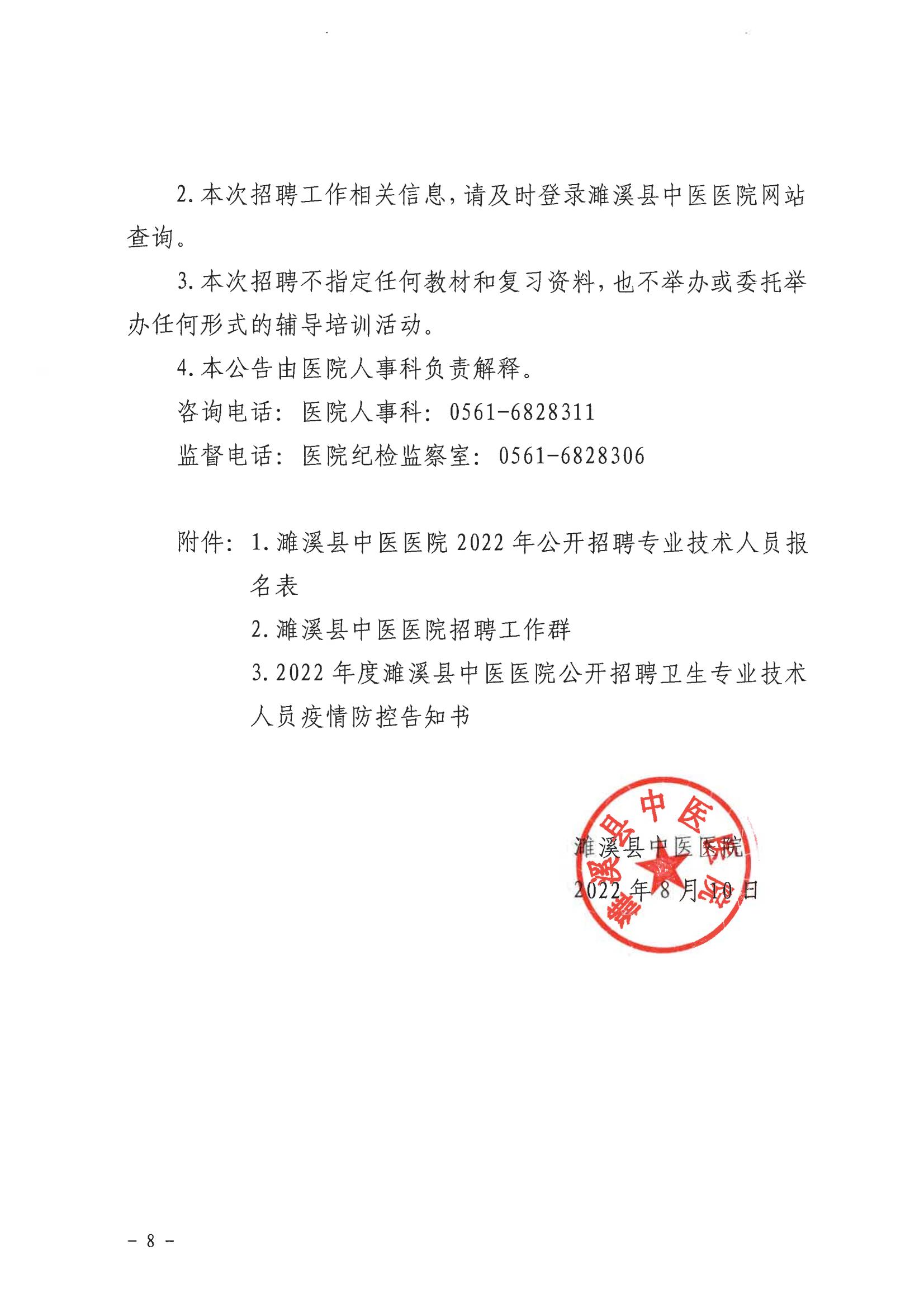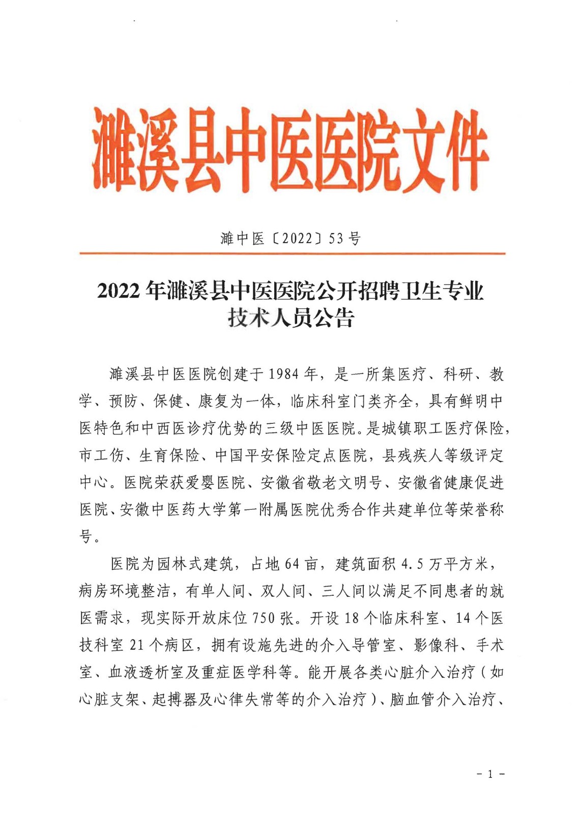 2022年淮北濉溪縣中醫(yī)醫(yī)院公開招聘衛(wèi)生專業(yè)技術(shù)人員公告