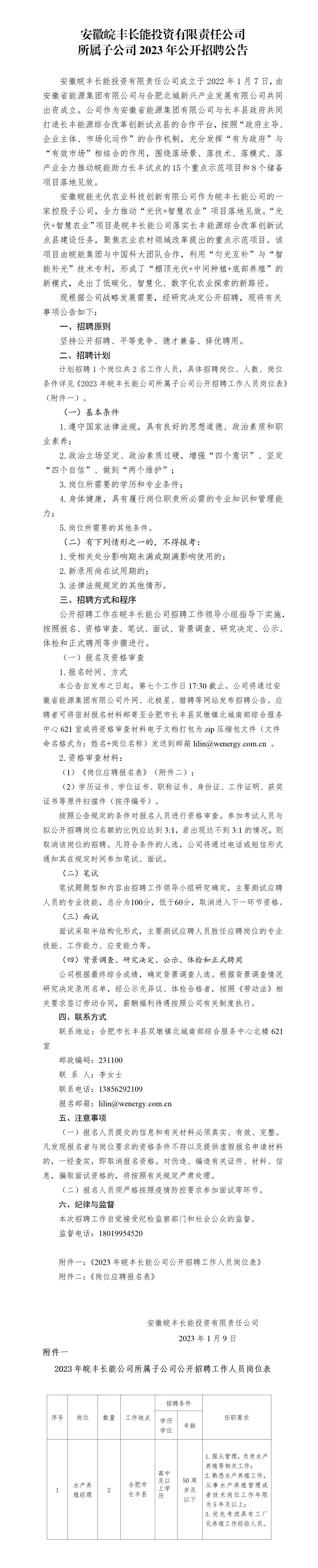 2023年合肥長豐縣安徽皖豐長能投資有限責(zé)任公司所屬子公司公開招聘公告
