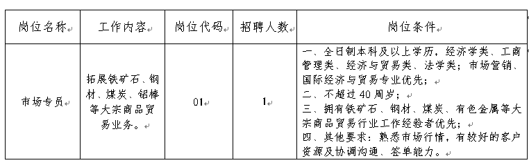 銅陵市建投商貿(mào)有限責(zé)任公司于2018年4月26日注冊(cè)成立,為銅陵市國(guó)有企業(yè)?,F(xiàn)因業(yè)務(wù)發(fā)展需要,面向社會(huì)招聘勞務(wù)派遣工作人員1名。具體事項(xiàng)公告如下:
