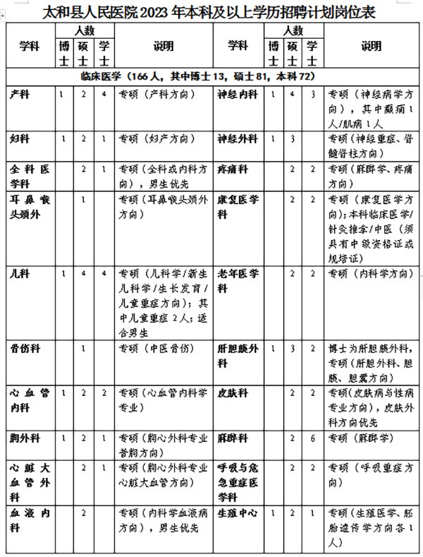 2023年阜陽太和縣人民醫(yī)院(本科及以上學(xué)歷)招聘公告