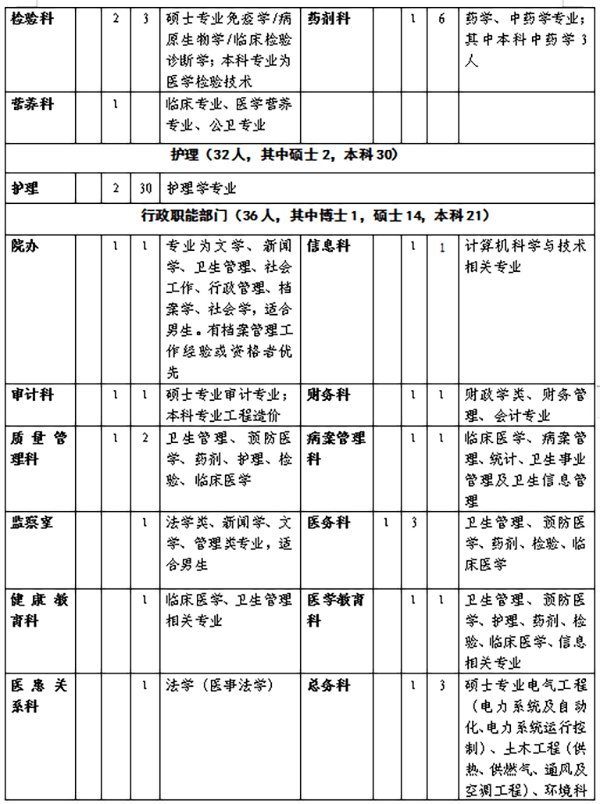 ①各招聘崗位具有碩士、中級職稱和執(zhí)業(yè)資格者優(yōu)先錄用;博士待遇面議(享受引才政策);