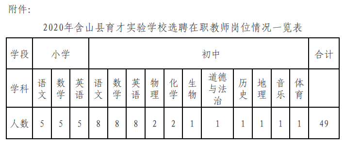 一、選聘學(xué)科及名額:擬公開選聘農(nóng)村中小學(xué)在編在職教師49名,具體崗位、學(xué)科見附件 。