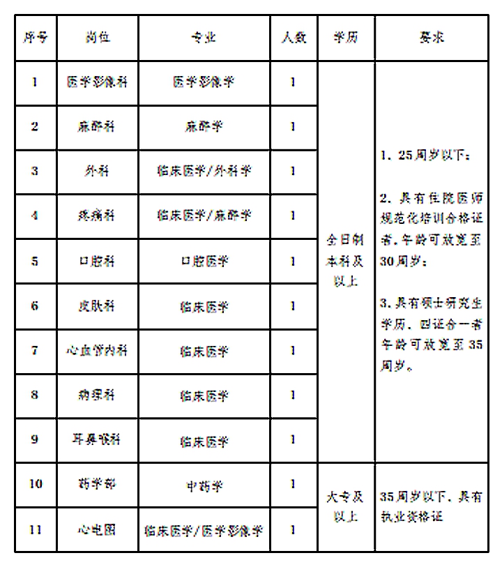 現(xiàn)根據(jù)醫(yī)院業(yè)務(wù)發(fā)展的需要,面向社會公開招聘以下專業(yè)技術(shù)人才,具體公告如下: