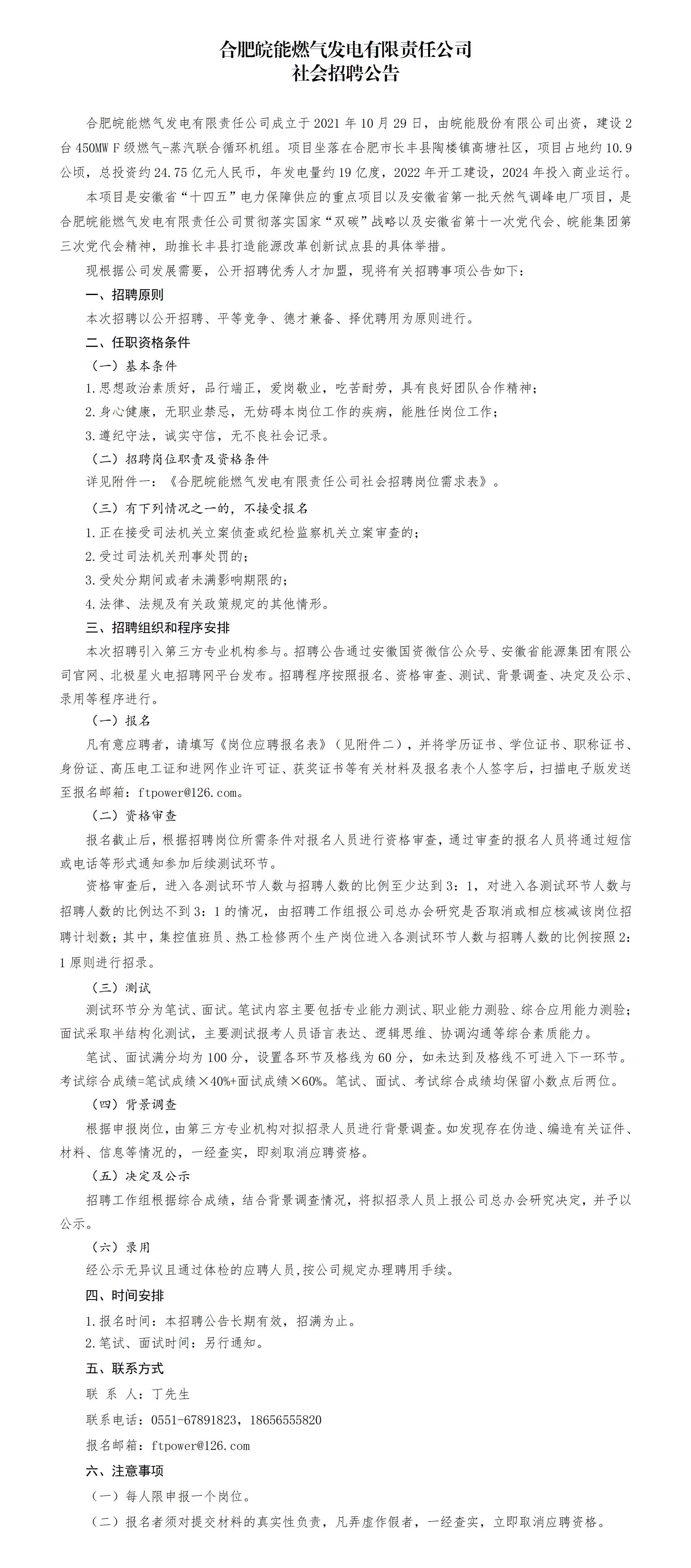 詳見附件一:《合肥皖能燃?xì)獍l(fā)電有限責(zé)任公司社會招聘崗位需求表》。
