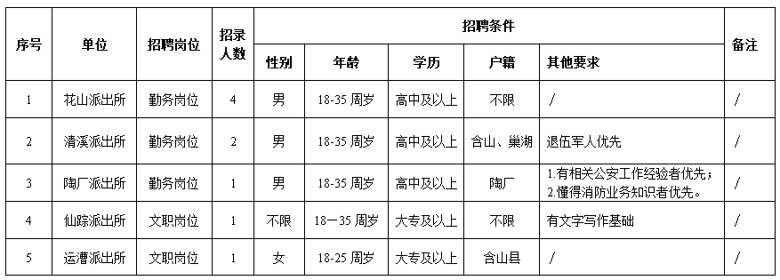 詳見附件1《含山縣公安局招聘警務(wù)輔助人員職位表》