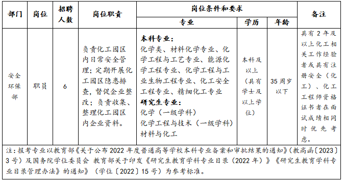 2023-05-17 15:40:13閱讀()寧國市人民政府為滿足公司發(fā)展需要,寧國經(jīng)濟技術(shù)開發(fā)區(qū)管委會所屬公司安徽興港化工有限公司擬面向社會公開招聘6名工作人員,現(xiàn)將有關(guān)事項公告如下: