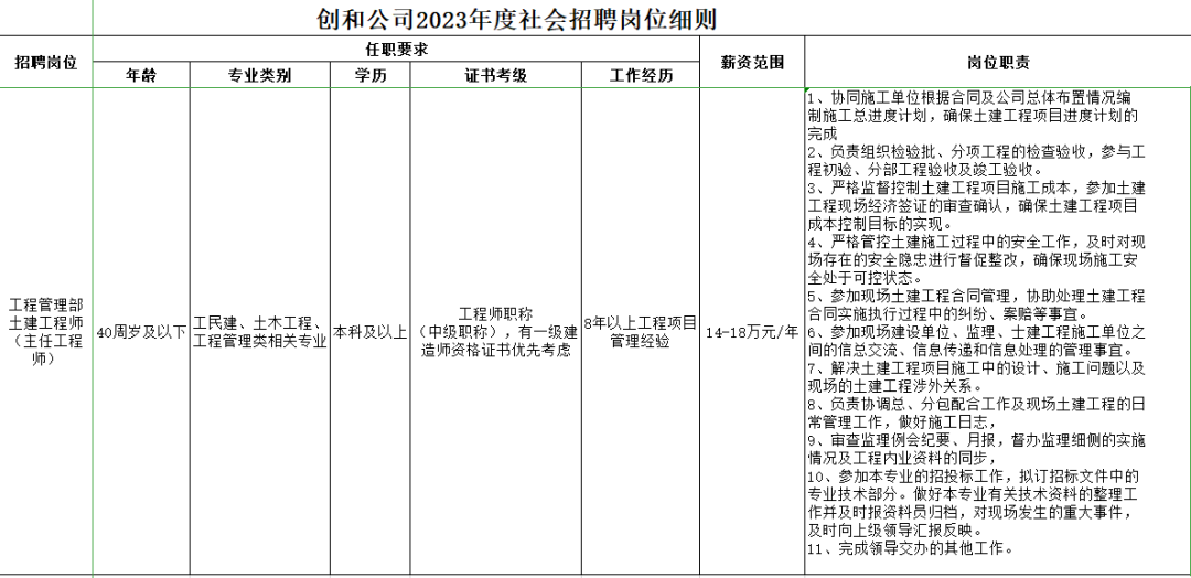 為滿足公司發(fā)展需要,根據(jù)《合肥創(chuàng)和資產(chǎn)管理有限責任公司員工招聘管理辦法》的要求,結合公司的實際情況,擬面向社會公開招聘工程管理部土建工程師2名。