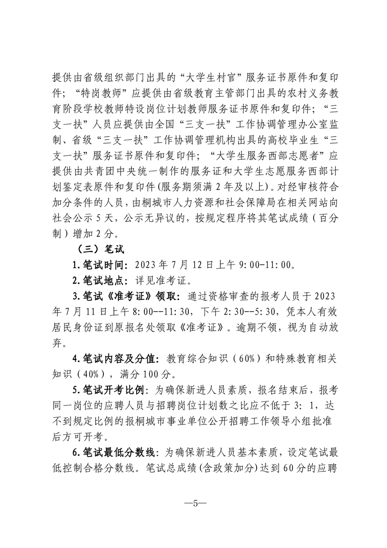 2023-06-13 17:44:37閱讀()桐城市人民政府根據(jù)《事業(yè)單位人事管理?xiàng)l例》(國(guó)務(wù)院令第652號(hào))、《安徽省事業(yè)單位公開(kāi)招聘人員暫行辦法》(皖人社發(fā)〔2010〕 78號(hào)) 、《安徽省教育廳安徽省委編辦安徽省財(cái)政廳安徽省人力資源和社會(huì)保障廳關(guān)于進(jìn)一步完善中小學(xué)教師招聘制度落實(shí)市縣中小學(xué)教師招聘主體責(zé)任的通知》(皖教秘師〔2020390號(hào))等規(guī)定和要求,現(xiàn)就2023年桐城市特殊教育學(xué)校公開(kāi)招聘新任教師工作有關(guān)事項(xiàng)公告如下: