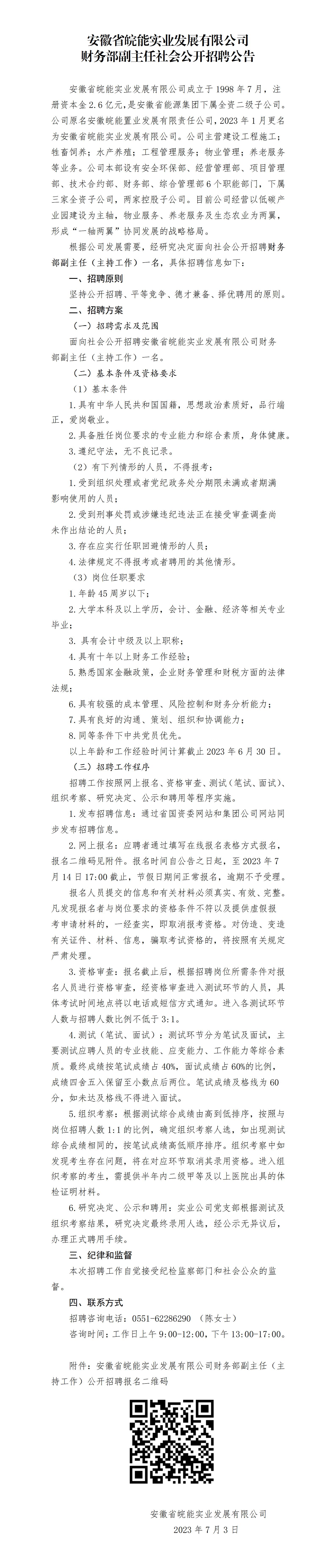 2023年安徽省皖能實業(yè)發(fā)展有限公司財務(wù)部副主任社會公開招聘公告