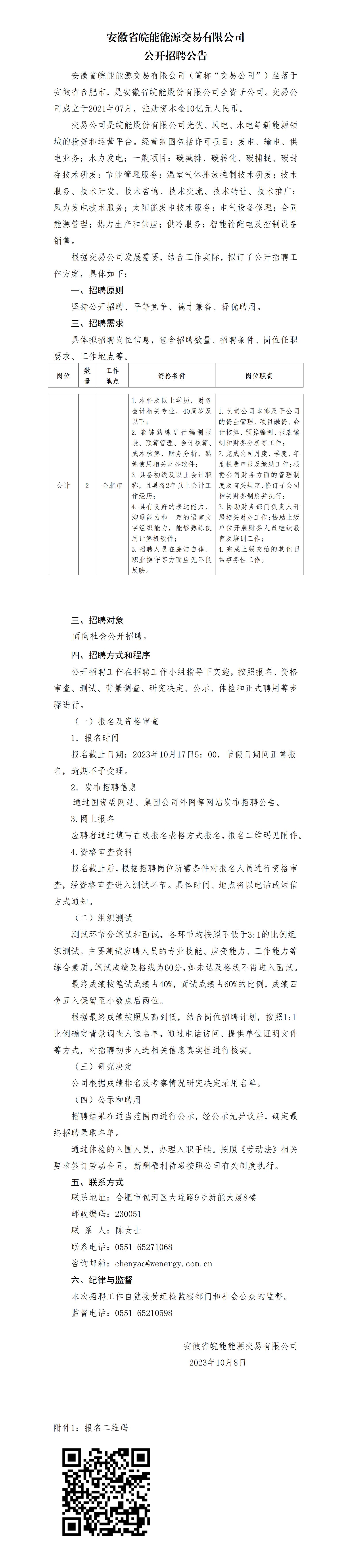 2023年安徽省皖能能源交易有限公司公開招聘公告