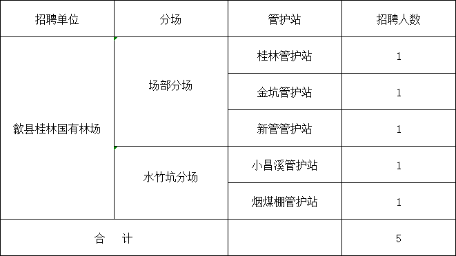 通過第三方勞務(wù)派遣方式招聘歙縣桂林國有林場護林員共5名。