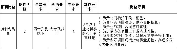 因工作需要,蚌埠城創(chuàng)人力資源服務(wù)有限公司現(xiàn)招聘2名工作人員,派駐蚌埠城信建材科技有限公司工作?,F(xiàn)將有關(guān)事項(xiàng)公告如下: