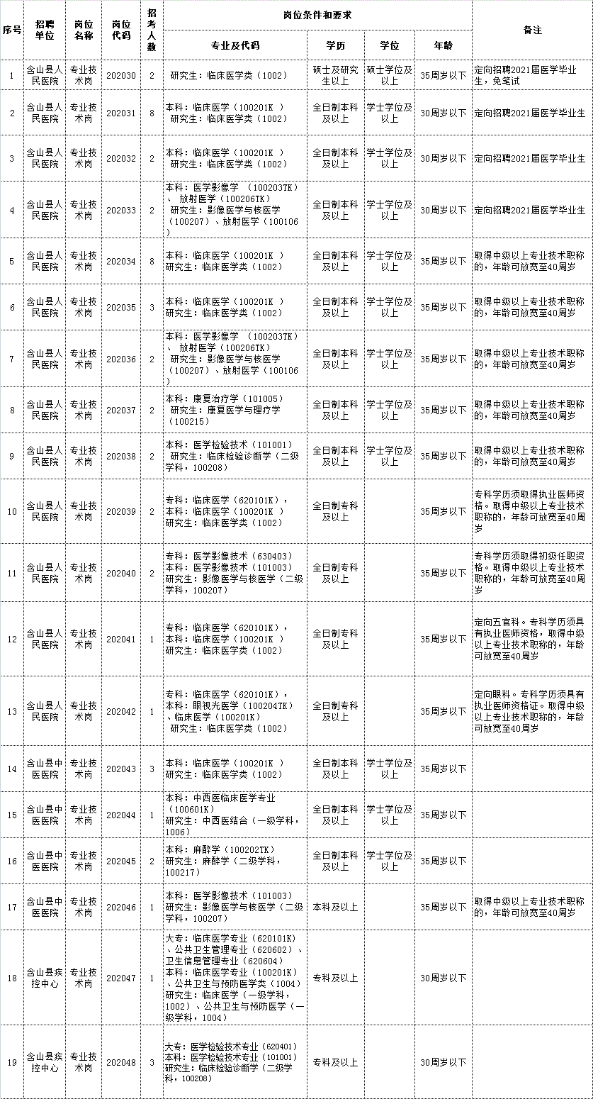 2020年馬鞍山含山縣醫(yī)療衛(wèi)生事業(yè)單位第二次公開招聘工作人員崗位計劃表