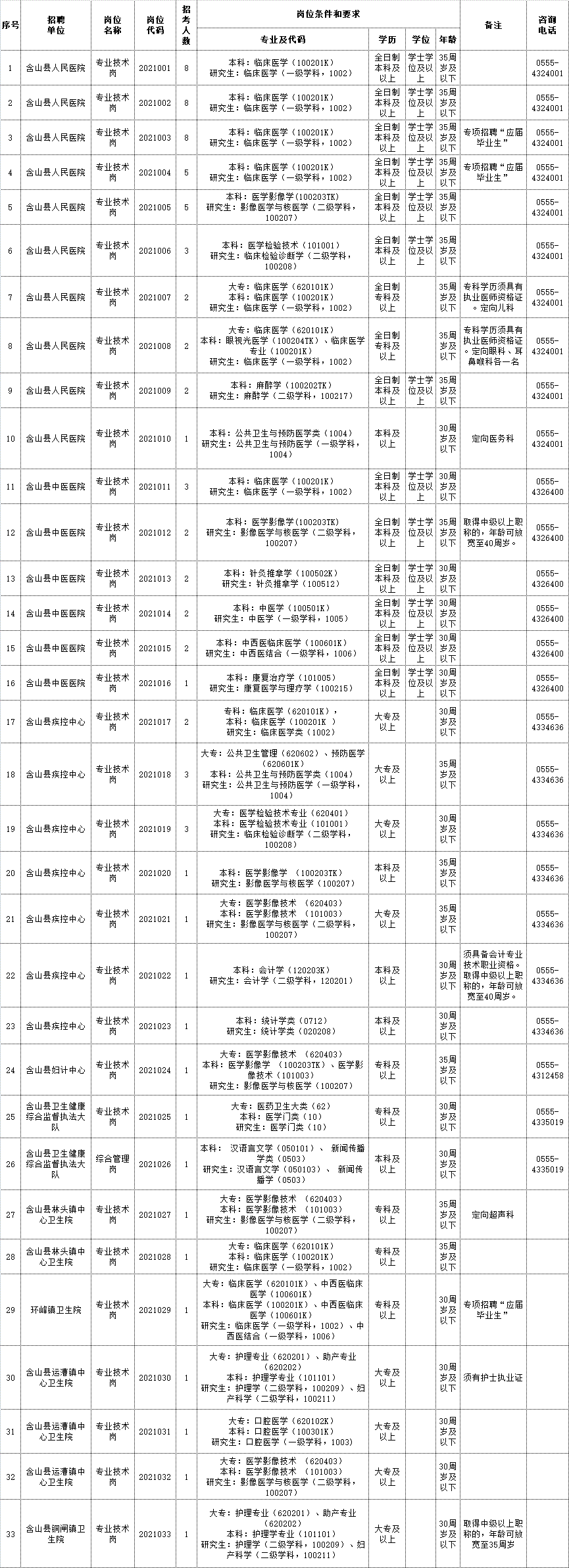 2021年馬鞍山含山縣醫(yī)療衛(wèi)生事業(yè)單位公開(kāi)招聘工作人員崗位計(jì)劃表