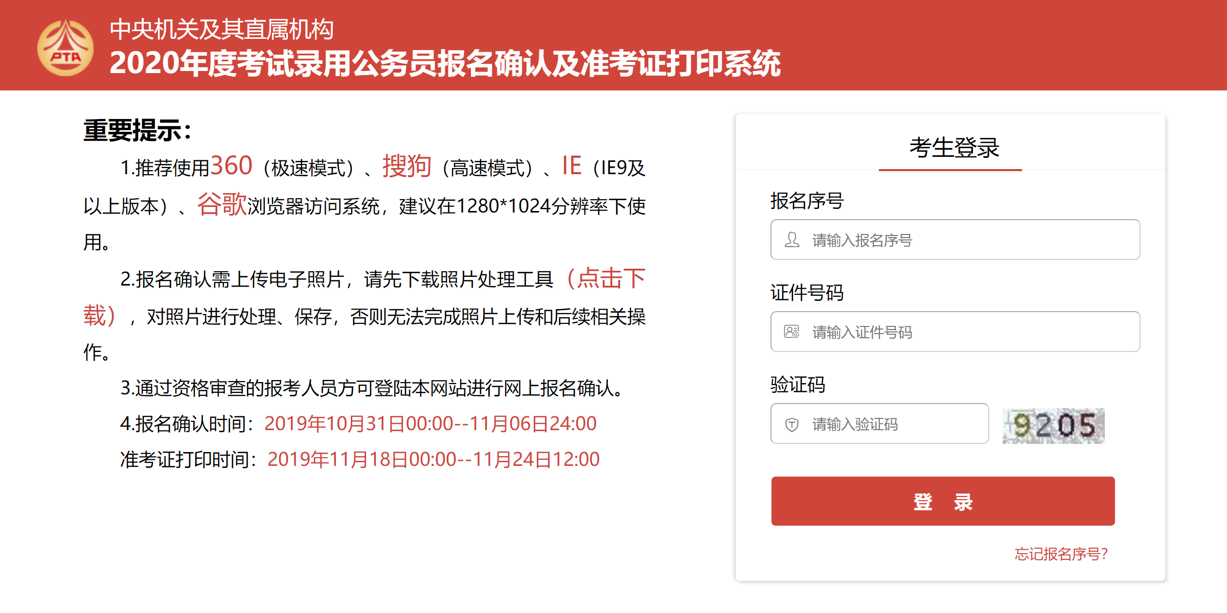 中央機(jī)關(guān)及其直屬機(jī)構(gòu)2020年度考試錄用公務(wù)員報(bào)名確認(rèn)及準(zhǔn)考證打印網(wǎng)址:http://gwy.cpta.com.cn