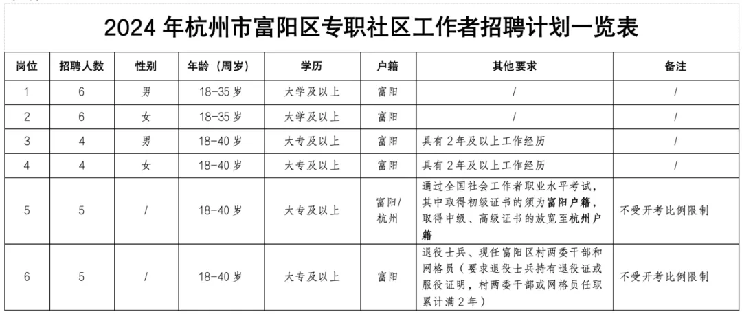 2024年杭州市富陽區(qū)專職社區(qū)工作者招聘通告